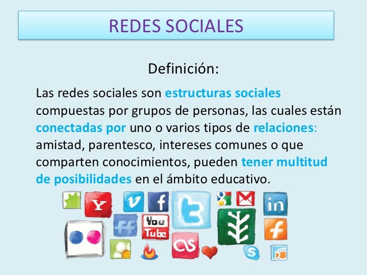 Las redes sociales son sitios de Internet formados por comunidades de individuos con intereses o actividades en común (como amistad, parentesco, trabajo) y que permiten el contacto entre estos, de manera que se puedan comunicar e intercambiar información.tipos de redes